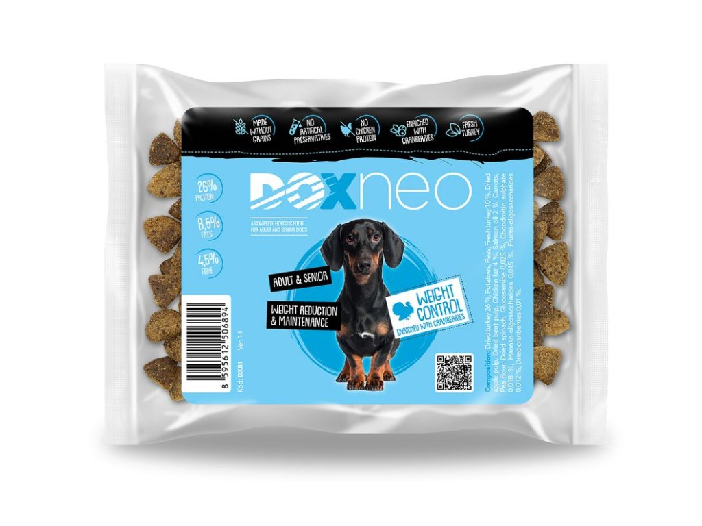 Kombinace čerstvé a sušené krůty, žádné obiloviny nebo umělé konzervanty. To je vylepšená receptura krmiva Doxneo Weight control. Tato receptura je určená pro dospělé psy a seniory pro snížení a udržení váhy. Složení je navíc obohacené o brusinky, které mají celou řadu pozitivních přínosů pro organismus a jsou považované za superpotravinu.